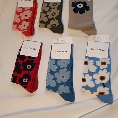 Marimekko sukat. Kirjavat puuvillasukat, joissa keltaista, oranssia ja vaaleanvihreää väriä. Materiaali on puuvillaa, joka tekee sukista pehmeät ja hengittävät. Sopivat arki- ja vapaa-ajan käyttöön. Naisille, koko 37-39