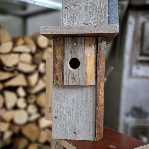 Uniikki tekemäni linnunpönttö maisema ikkunalla josta tirput voivat katsella. 🙈