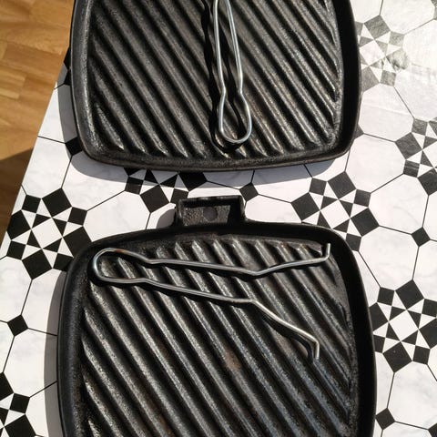 Valurautainen parilapannu, puukahvalla