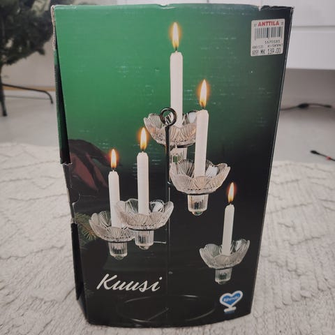 Riihimäen Lasi Kuusi kynttilänjalka – 5 kynttilää, alkuperäinen laatikko