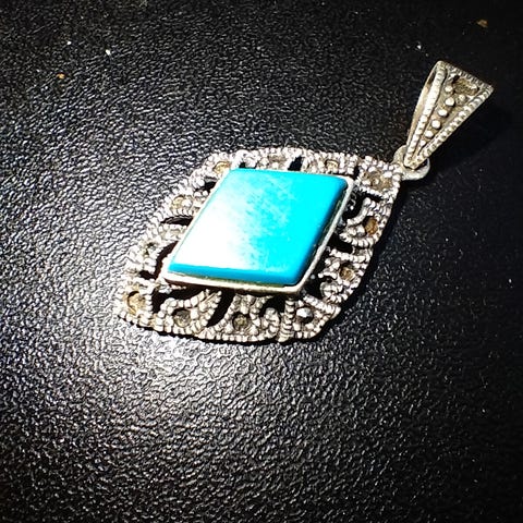 Mitat: n. 4,5 x 2,5 cm (sisältäen riipuslenkin).