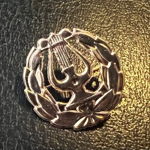 Kultainen äidin-/ylioppilas-/rintalyyra! Asiantuntijan happotestin mukaan 8 karaatin (333) kultaa.
