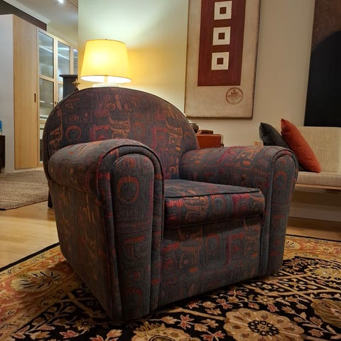 Rahi nostaa jalat hyvään asentoon ja selkänoja laskeutuu alemmaksi sitä työntämällä. Nouto länsi-vantaalta, saattaa mahtua mun autoonkin...🤔