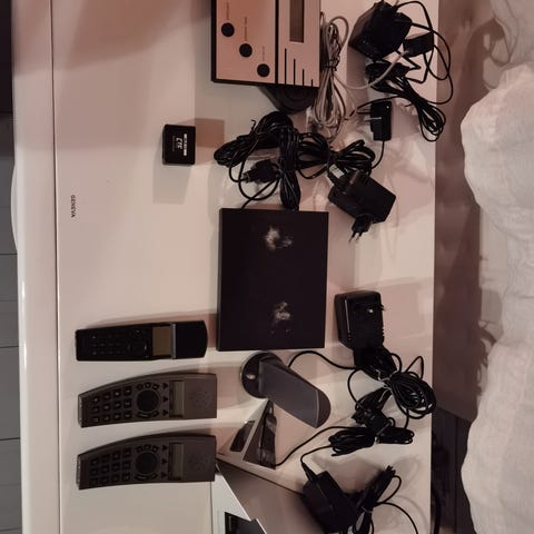 Bang & Olufsen BeoCom 6000 puhelin. Pöytämallinen puhelin, jossa on erillinen lataustelakka. Sopii käytettäväksi perinteisen lankapuhelinliittymän kanssa.