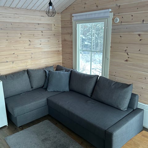 Mukava, tilava ja ajaton sohva, sopii hyvin olohuoneeseen.