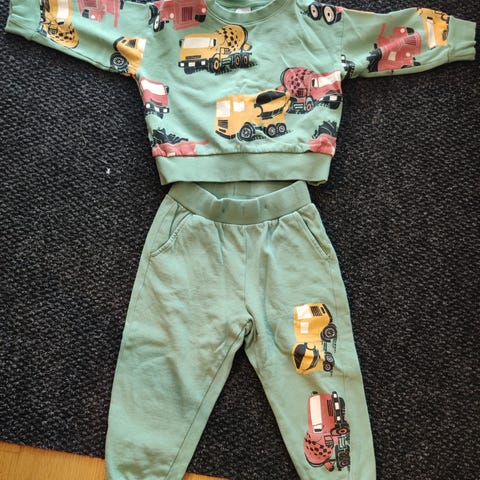 Oikein siistit. Toisessa hihansuussa haalea tahra (näkyy kuvassa). Pientä pesuhaitua hihansuissa. Housut saa kiristettyä vyötäröltä kuminauhan ja nappien avulla. Hajusteeton pesu.