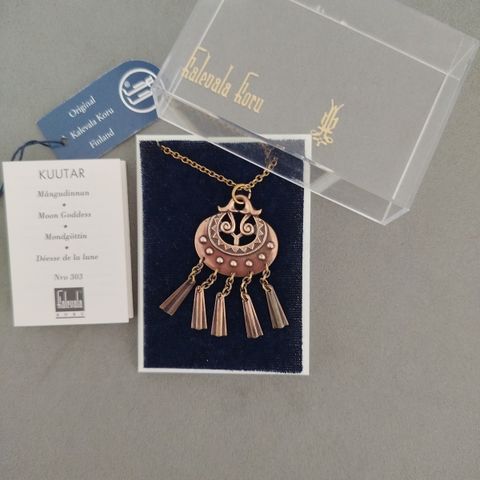 Valmistaja: KALEVALA KORURiipuksen halkaisija on noin 5,5 cmKetjun pituus on noin 70 cmVäri: pronssiaMateriaali: pronssi