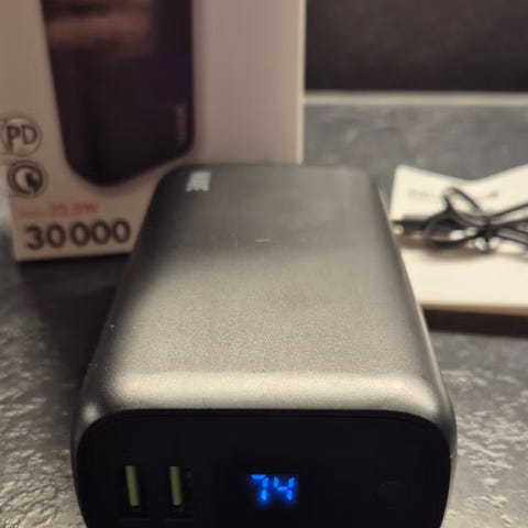 Laitteessa on USB-A- ja USB-C-liitännät sekä merkkivalot varaustason näyttämiseen. Sopii esimerkiksi puhelimien ja muiden USB-ladattavien laitteiden lataamiseen liikkeellä ollessa.