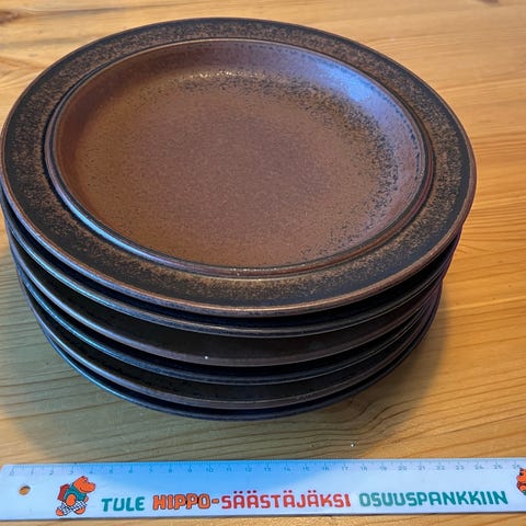 6 kpl Arabia Ruska lautasia. Halkaisija n. 17 cm. Käytettyjä, mutta hyväkuntoisia. Todennäköisesti 60-70-luvulta.