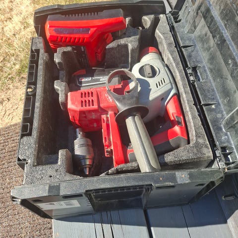 Ferm poravasara sininen. Mukana kuljetuslaukku, sivukahva, useita poranteriä ja talttoja sekä avain. Soveltuu poraukseen ja piikkaustöihin esimerkiksi betoniin ja muuhun kovaan materiaaliin. Sähkökäyttöinen malli verkkovirralla käytettäväksi.