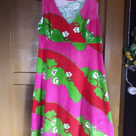 Suomalainen froteemekko /kylpymekko ilman vyötä (vyölenkit). Kokolapussa 40. Hyväkuntoinen, pehmeä, hajuton. Helmassa halkiot sivuilla.