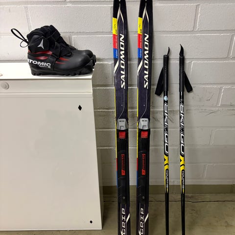 Sukset 160 cm Tecnopro sns - profiilin siteellä, sauvat 115 cm. Sauvoiksi voi ottaa 120 cm sauvat. Monot Salomon koko 36 2/3. Monoiksi voi vaihtoehtoisesti ottaa koon 35,5 tai 37 / 38 monot.