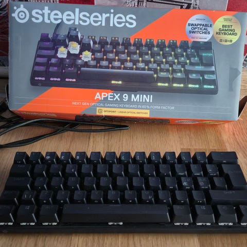 Päällä valkoiset pudding keycapit, mukaan tulee alkuperäiset, jotka ovat melkein käyttämättömät.