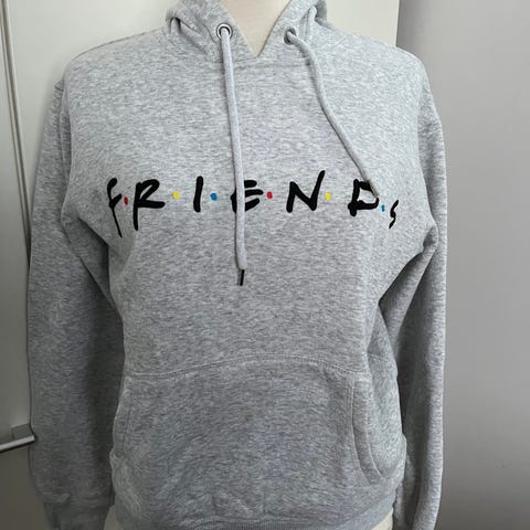 H&M paita, koko XS. Musta puuvillainen pitkähihainen huppari, jossa edessä painettu FRIENDS-teksti. Hupullinen malli, kiristettävä nyöri kauluksessa ja resorit hihansuissa sekä helmassa. Sopii naisille arki- ja vapaa-ajan käyttöön.