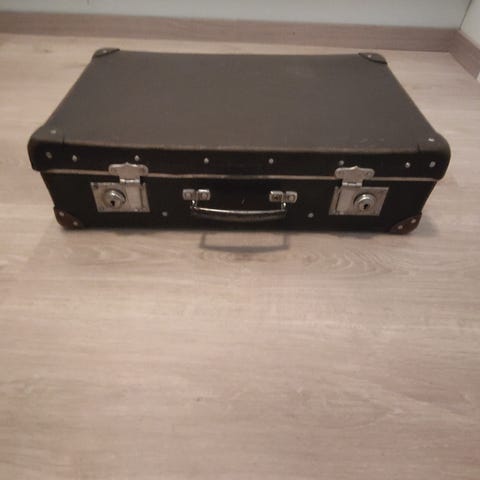40-50 lukulainen, patinoitunut matkalaukku, isohko. Laukussa vaaleat reunukset ovat nahkaa. Lukkojen vastakappaleet irronneet ja vain toinen on tallessa. Meillä tässä on viimeksi säilytetty lasten pehmoleluja. Sopii moneen sisustukseen ja säilytykseen. Koko n. 70 *40 cm ja korkeus n. 20 cm