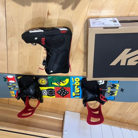 K2 mini -lumilauta, siteet ja kengät, pituus 120 cm