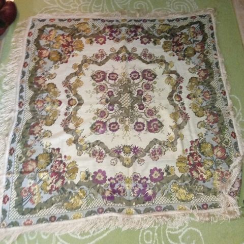 Kirjailtu liina/kirjottu liina. Koko n. 71 x 73 cm.