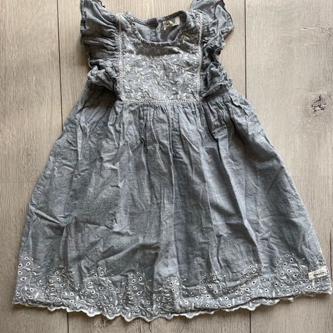 Newbie mekko tytöille, koko 104 cm. Materiaalina puuvilla. Mekossa on monivärinen kukkakuviointi vaalealla pohjalla. Mallissa on lyhyet hihat ja helmassa on poimutettu, kerroksellinen leikkaus. Sopii arki- ja juhlakäyttöön! Edessä pieni tahra, jota ei ole koitettu poistaa millään. Siitä kuva.