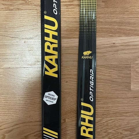 Karhu optigrip voiteluvapaat pitopohjasukset 140 cm. Monot kokoa 32 tai 33. Voi löytyä isompiakin vaihtoehtoja. Sauvat myös mukaan.
