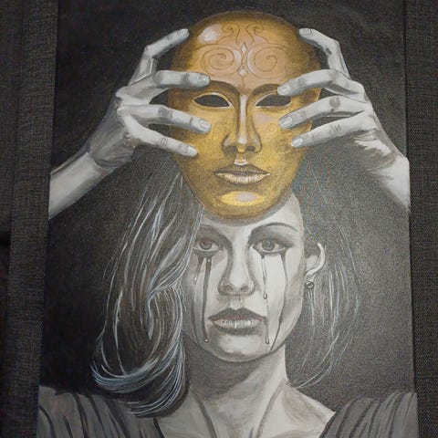 Kaksi kasvomaskia Made in Gambia . Korkeus noin 53 cm . h. 20€/kpl