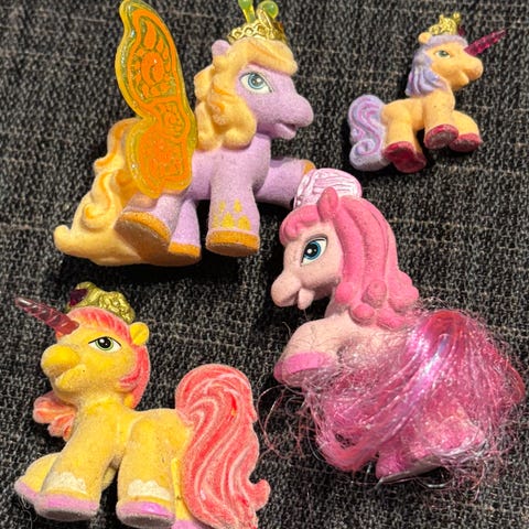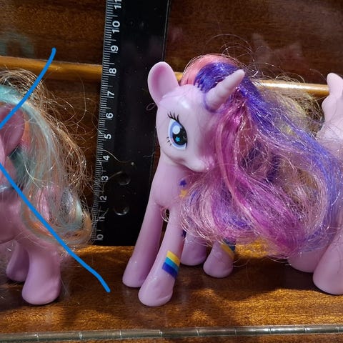 Muoviset ponilelut setti monivärinen. Useita erikokoisia ja -värisiä poneja, joilla on harjat ja hännät kampailtavaksi. Sopii leikkeihin poni- ja eläinhahmoista pitäville lapsille. Setissä sekä pienempiä että suurempia hahmoja, eri väriyhdistelmiä ja kuvioita ponejen kyljissä.