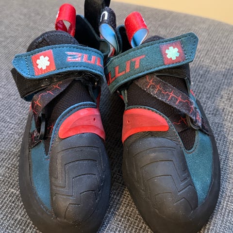 Black Diamond kiipeilykengät. Väri harmaa. Kengissä on tarrakiinnitys kahdella remmillä ja vetolenkit kantapäässä pukemisen helpottamiseksi. Vain kerran kokeiltu ja valitettavasti itselle liian pieneksi todettu. Vastaa paremmin kokoa 40.