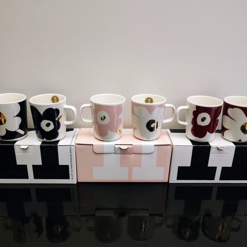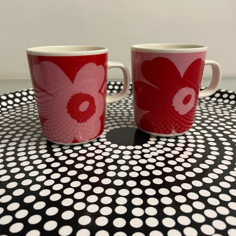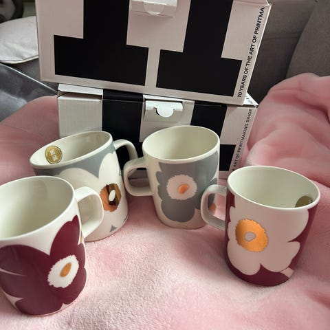 Myydään kerran käytetyt Juhla Unikko mukit 10kpl kultauksilla. Pesty käsin. Molempia värejä 5kpl. Nouto tai PK ostajalle.