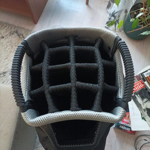 Kärryssä on sateenvarjonpidikkeen jalusta. Pidike on hankittava erikseen.Muut yksityiskohdat:– Sateenvarjopidikkeen jalusta (sateenvarjopidike hankittava erikseen)– Pidikkeet juomalle, palloille, pistekortille ja vastaaville– Säädettävä kahva