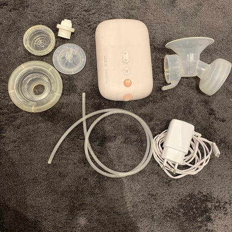 Toimiva sähkäkäyttöinen rintapumppu perusvarustuksella.