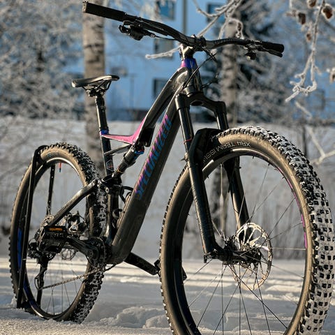 -Pyörään löytyy 2 kiekkosarjaa. Kesävanteilla Continental Dubnital 2,4". Talveksi uudet 2,6" nastat.
