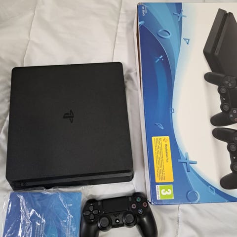 Kaks ohjainta, johto, kolme peliä. Täysin toimiva ps4 pro