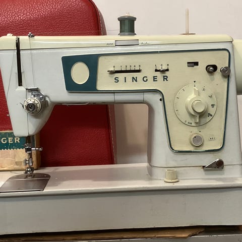 Köhler zig-zack rautainen kone raskaaseen ompeluun hienossa kaapissa isolla työtasolla hyvillä tarvikkeilla saksalainen laatutuote itä saksasta täysin toimiva koeommeltavissa Herttoniemessä