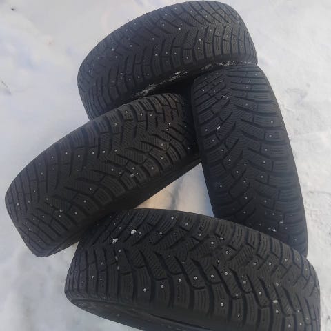 Hakusessa hyvät nastarenkaat Mitsubishi Lanceriin. Joko vanteilla tai ilman. Pirkanmaalta nouto