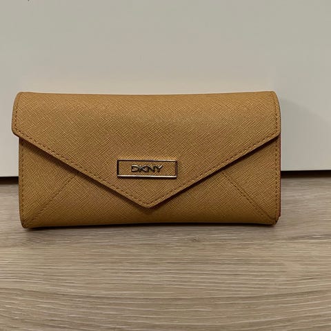 DKNY naisten lompakko tekonahkaa. Väri musta, ulkopuolella kultainen DKNY-logo ja vetoketju. Lompakossa on vetoketjusuljenta ympäri reunan. Sisäpuolella useita korttipaikkoja, setelitaskuja sekä keskellä vetoketjullinen tasku kolikoille. Sopii päivittäiseen käyttöön käsilaukussa tai erillisenä lompakkona.