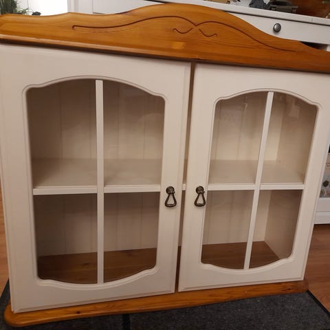 2 kpl pientä lasivitriiniä. Takana kiinnikkeet seinäkiinnitystä varten. Voi myös pitää tason päällä.
