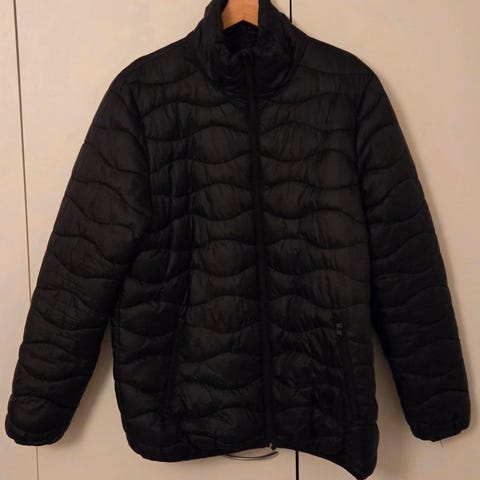 Kevyt Neomondo untuvatakki koko s/m. Takapuolella pienipieni reikä (näkyy viimeisellä kuvalla) muuten en löydä vikoja.