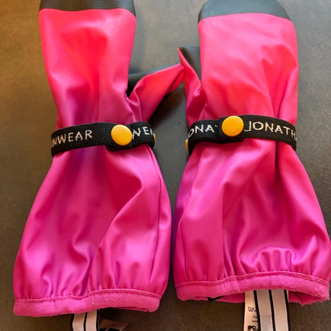 Topatut rukkaset. Kokolapussa 2-4v. Aika isokokoiset joten arvioin 104/110. Jäi meillä käyttämättömiksi. Alussa ompelin vetoketjut kiinni ettei aukea mutta ei nämä sitten käyttöön asti päätyneet. Mitta kuvassa 2.
