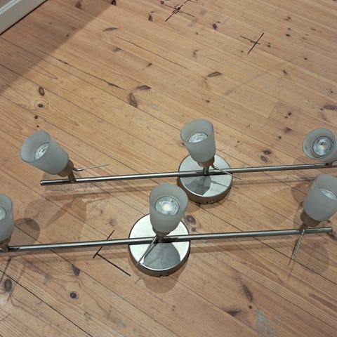 Myydään Ikean spottivalaisin kolmella lampulla. Asennus asennusraudoilla ja sokeripalaliitäntä.