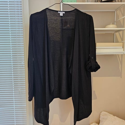 Harmaa Amisu pitkä(n.100cm olka-helma) neuletakki. Koko M.