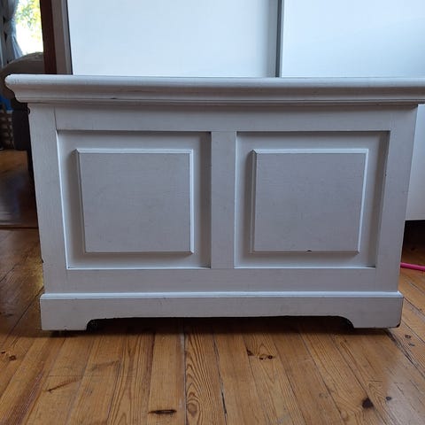 Puinen arkkupöytä jonka saa avattua molemmilta puolilta. Maalattu aikoinaan valkoiseksi. Maali osittain hieman kulunut reunoilta. Myydään muuton vuoksi. Nouto Martinlaaksosta viimeistään 19.2.26.
