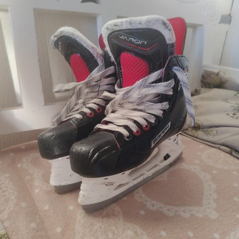 Huippu luokan Bauer Vapor x700jääkiekkoluistimet lapsille, koko 38,5 (US 5D). Normaali lesti, jalkaterän pituus 22,5–23,0.Luistimissa on tukeva varsi ja TUUK vaihdettava LS -terä.Väri tummansininen/harmaa valkoisilla teräkiskoilla. Soveltuvat jääkiekkojunnulle ja yleiseen luisteluun. Luistimet on teroitettu valmiiksi Sport Servisessä 20€, siitä tarra luistimien pohjassa.