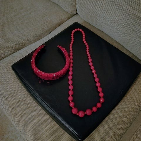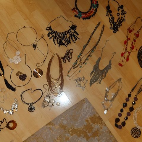 Kaulakoruja, rannekoruja, sormuksia ja korvakoruja