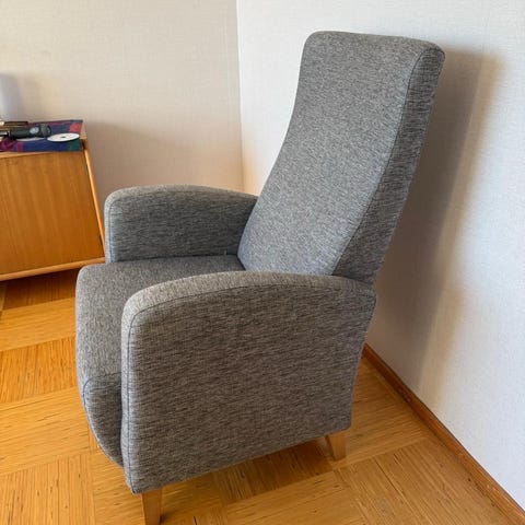 Muuton tieltä kukkakuvioinen lepotuoli. Pääasiassa nouto