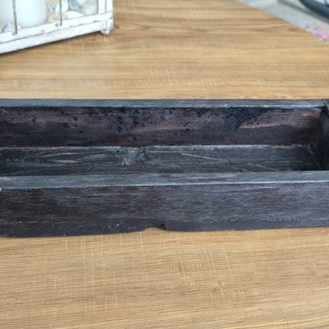 Laatikko on suorakulmainen ja melko matala, ja se soveltuu esimerkiksi säilytykseen tai kuljetukseen sisä- tai ulkokäytössä. Pinta on patinoitunut ja puu on käsittelemätöntä tai kevyesti käsiteltyä.