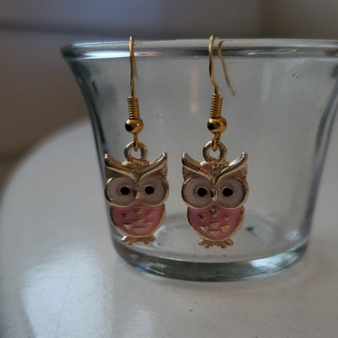 Roikkuvat uudenveroiset, kerran pidetyt ruskeat pöllö aiheiset korvakorut sulilla.