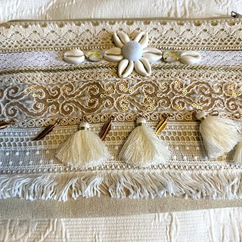 Kuvien mukainen valkobeige Line collection-merkkinen iltalaukku.