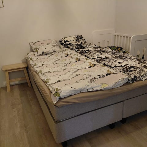 Koko setti 100€. Sängynrungon saa purettua hyvin osiin, joten on mahdollista kuljettaa myös henkilöautolla. Nouto haapaniemeltä (n. 1km torilta).