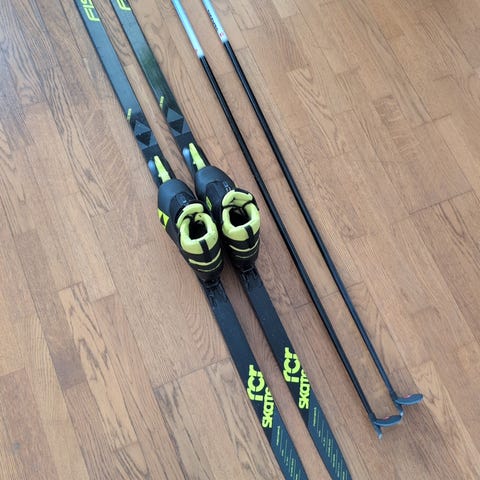 Myydään todella hyväkuntoinen käytetty luisteluhiihto suksipaketti nuorelle/aikuiselle perinteiseen hiihtoon/ luisteluhiihtoon / vapaa hiihto/koululiikuntaan kouluhiihtoon/ koululiikuntaan.