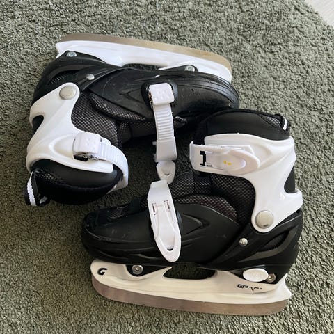 Tyke lasten jääkiekkoluistimet, koko 30. Säädettävät aina kokoon 33 asti. kovamuovinen kuori ja solkikiinnitys.