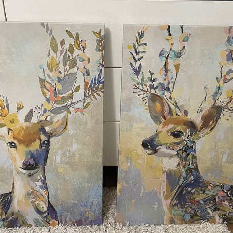 2kpl Sisustustauluja, 30x70cm. Ehjät, hyväkuntoiset. Takana kiinnityspidikkeet.